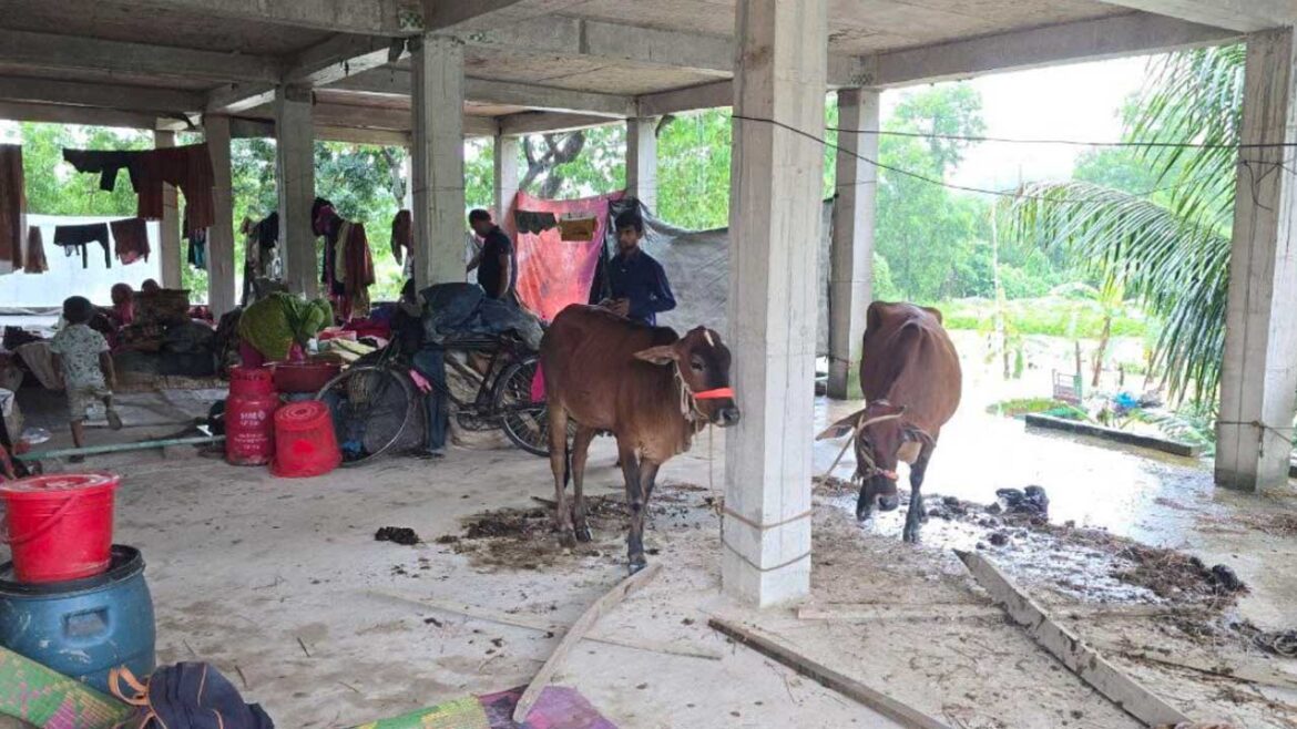 গবাদিপশু নিয়ে ছাদে আশ্রয় নিলেন বানভাসি মানুষ