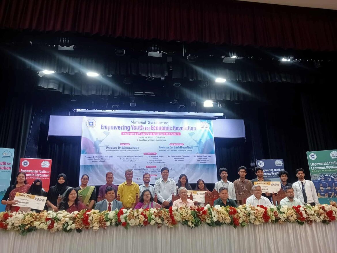 রাজশাহী বিশ্ববিদ্যালয় ইন্সটিটিউট অব কোয়ালিটি অ্যাসুরেনসের (আইকিউএসসি) উদ্যোগে আয়োজিত Empowering Youth or Economic Revolution শীর্ষক এ সেমিনারে অতিথি হিসেবে ছিলেন বিশ্ববিদ্যালয়ের উপাচার্য অধ্যাপক সালেহ হাসান নকীব, উপ-উপাচার্য অধ্যাপক ফরিদ উদ্দিন খান এবং অধ্যাপক মাঈন উদ্দিন, বিশ্ববিদ্যালয় মঞ্জুরি কমিশনের সদস্য অধ্যাপক মাসুমা হাবিব, ইউজিসির স্ট্রাটেজিক প্ল্যানিং এন্ড কোয়ালিটি এস্যুরেন্স ডিরেক্টর ড. দূর্গা রানী সরকার, এসপায়ার টু ইনোভেট (এ টু আই) এর প্রজেক্ট ডিরেক্টর রাশিদুল মান্নাফ কবির প্রমুখ।