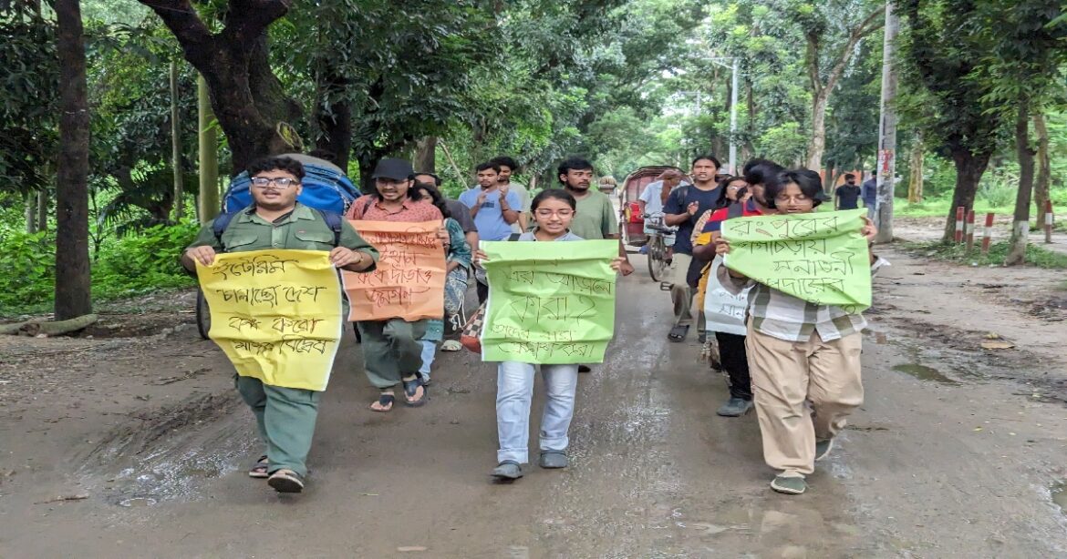 আজ মঙ্গলবার দুপুরে নিপীড়নের বিরুদ্ধে জাহাঙ্গীরনগর ব্যানারে বিশ্ববিদ্যালয়ের নতুন কলা ভবন এলাকা থেকে বিক্ষোভ মিছিল বের করেন তারা। মিছিলটি কয়েকটি সড়ক ঘুরে বটতলা এলাকায় গিয়ে শেষ হয়। পরে সেখানে সংক্ষিপ্ত সমাবেশ করেন তারা।