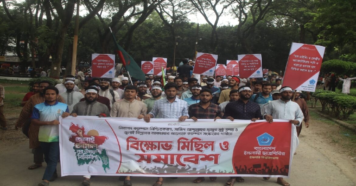 ইসলামী বিশ্ববিদ্যালয়ের শিক্ষার্থী সাজিদ আব্দুল্লাহর মৃত্যুর ঘটনার সুষ্ঠ তদন্ত, নিরাপদ ক্যাম্পাস নিশ্চিতকরণ ও ছাত্রসংসদ (ইকসু) গঠনের দাবিতে বিক্ষোভ মিছিল ও সমাবেশ করেছে ইসলামী বিশ্ববিদ্যালয় (ইবি) শাখা ছাত্র শিবির।