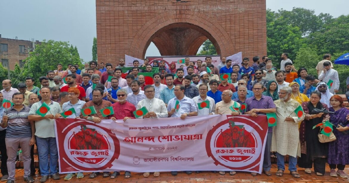 জাহাঙ্গীরনগর বিশ্ববিদ্যালয়ের সাবেক প্রধানমন্ত্রী শেখ হাসিনার পলায়ন ও পতন দিবস উদযাপন হয়েছে। আজ বুধবার দুপুরে দিবসটি উপলক্ষে আনন্দ শোভাযাত্রা বের করেন শিক্ষক-শিক্ষার্থীরা। শোভাযাত্রাটি শহীদ মিনারের পাদদেশে থেকে শুরু হয়ে জুলাই স্মৃতিস্তম্ভ অদম্য-২৪ এর পাদদেশে গিয়ে শেষ হয়।