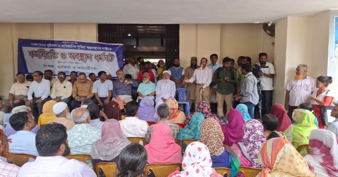 তিনি আরও বলেন, ‘শিক্ষক ও কর্মকর্তাদের অবরুদ্ধ করা ছিল অমানবিক আচরণ, যা কখনো কাম্য নয়। প্রশাসনের প্রতি আহ্বান এক মাসের মধ্যে শিক্ষক, কর্মকর্তা ও কর্মচারীদের প্রতি বিদ্যমান বৈষম্য দূর করে সমঝোতায় আসতে হবে।’