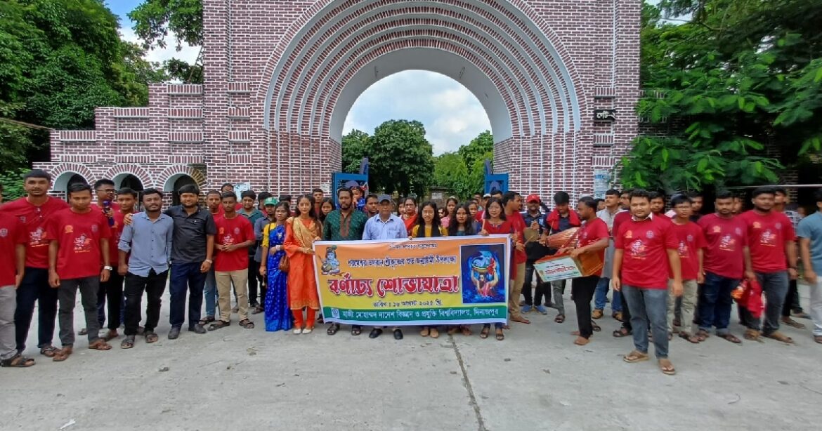 বর্ণাঢ্য শোভাযাত্রা সকাল ১০টায় প্রশাসনিক ভবন প্রাঙ্গণ থেকে যাত্রা শুরু করে। সেখান থেকে শোভাযাত্রা দশতলা ভবনের সামনে দিয়ে প্রধান ফটকে পদার্পণ করে। পরবর্তীতে শোভাযাত্রাটি  প্রধান সড়ক বরাবর এগিয়ে যায় DVM গেটের দিকে। সবশেষে শোভাযাত্রাটি  DVM গেট হয়ে মন্দির প্রাঙ্গণে প্রবেশের মাধ্যমে সমাপ্ত হয়।