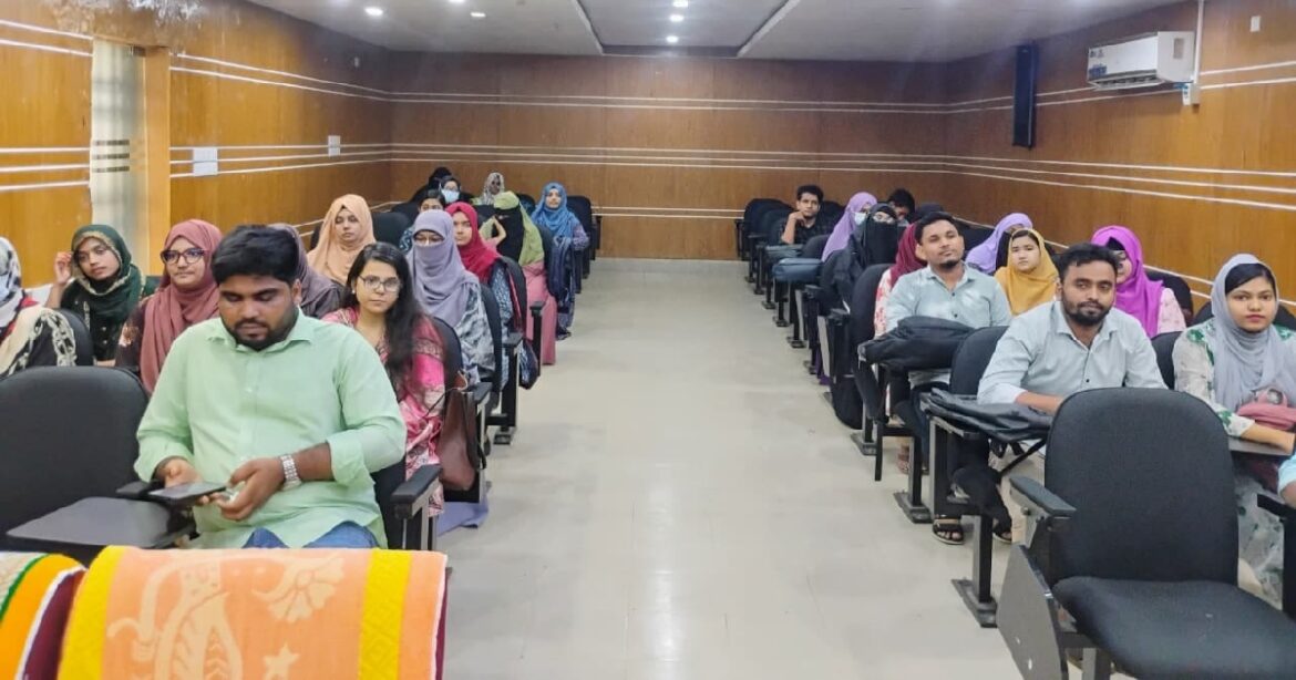ফার্মেসি বিভাগের ২০২১-২২ শিক্ষাবর্ষের শিক্ষার্থী জাকিয়া আক্তার ও মাহমুদুল হাসান শাহেদের সঞ্চালনায় পবিত্র কুরআন ও গীতা পাঠের মাধ্যমে অনুষ্ঠান শুরু হয়।