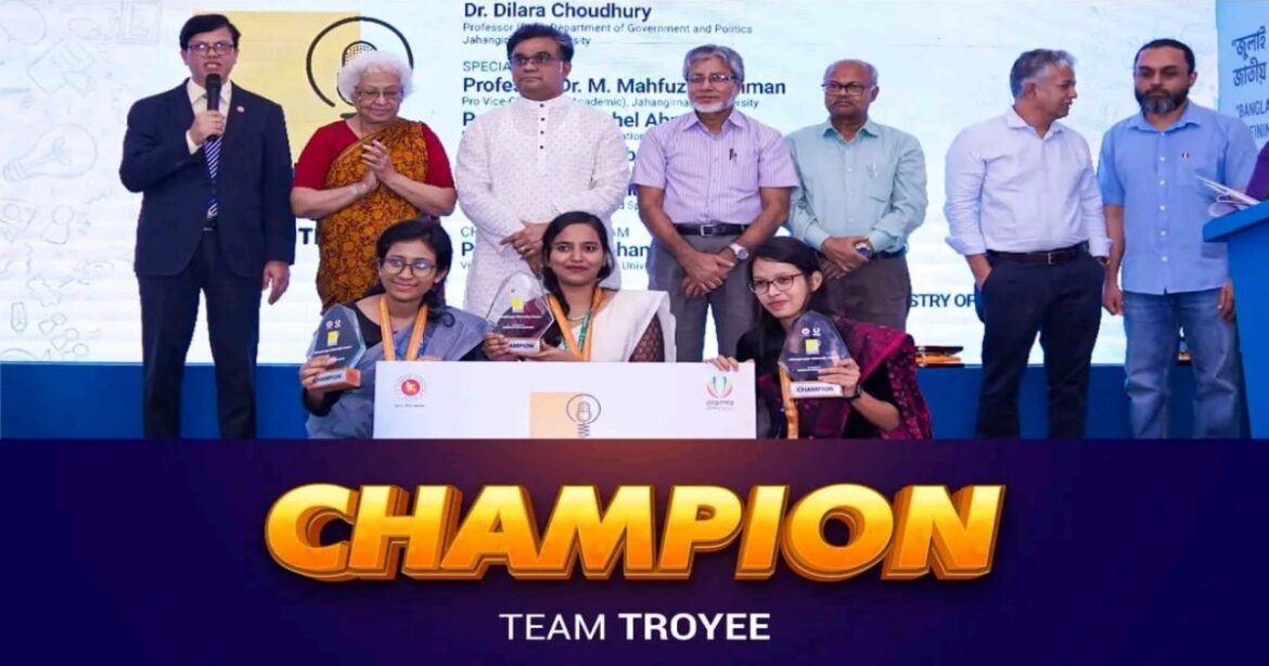 যুব ও ক্রীড়া মন্ত্রণালয়ের আয়োজনে ‘জাতীয় নীতি প্রতিযোগিতা ২০২৫’ জাহাঙ্গীরনগর বিশ্ববিদ্যালয় চ্যাপ্টারের চূড়ান্ত পর্বে চ্যাম্পিয়ন হয়েছে আন্তর্জাতিক সম্পর্ক বিভাগের শিক্ষার্থীদের দল ত্রয়ী।