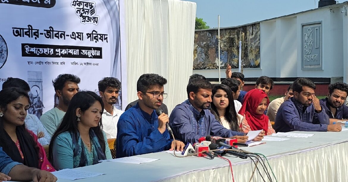 সংবাদ সম্মেলনে লিখিত ইশতেহার পাঠ করেন প্যানেলের সহ-সভাপতি (ভিপি) পদপ্রার্থী শেখ নূর উদ্দিন আবির, সাধারণ সম্পাদক (জিএস) প্রার্থী নাফিউল জীবন, সহ-সাধারণ সম্পাদক (এজিএস) প্রার্থী জাহিন বিশ্বাস এষা।