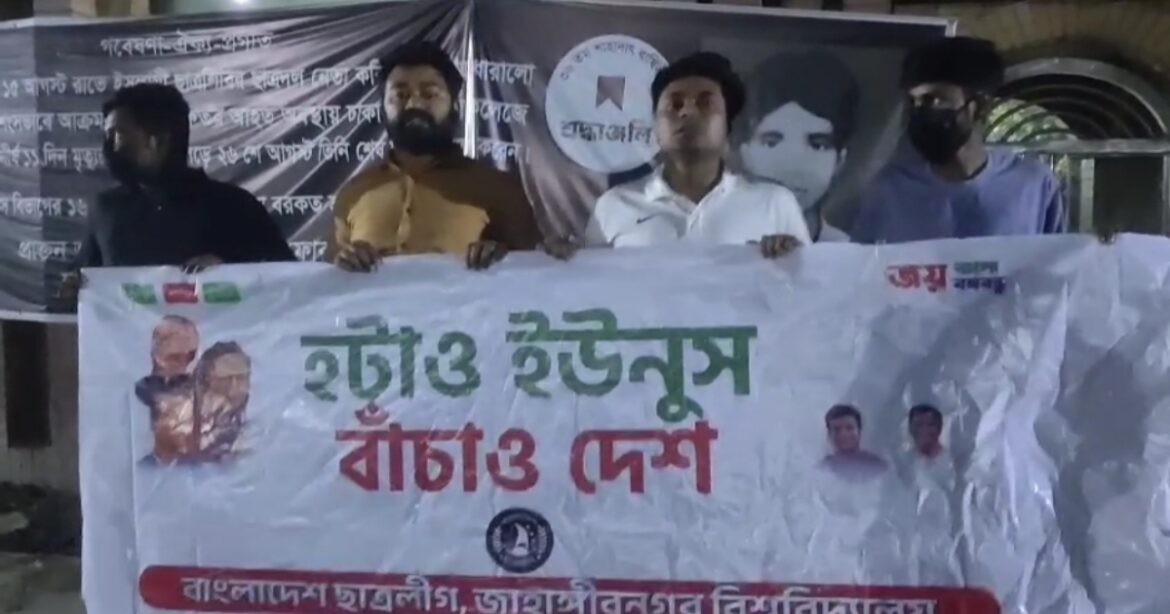 জাহাঙ্গীরনগর বিশ্ববিদ্যালয়ের প্রধান ফটকের সামনে নিষিদ্ধঘোষিত ছাত্রলীগের কয়েকজন নেতা-কর্মীর প্রতিবাদ সমাবেশের ভিডিও ছড়িয়ে পড়েছে সামাজিক যোগাযোগ মাধ্যমে ফেসবুকে। বিষয়টি ঘিরে প্রশাসনকে দায় দিচ্ছেন শিক্ষার্থীরা।