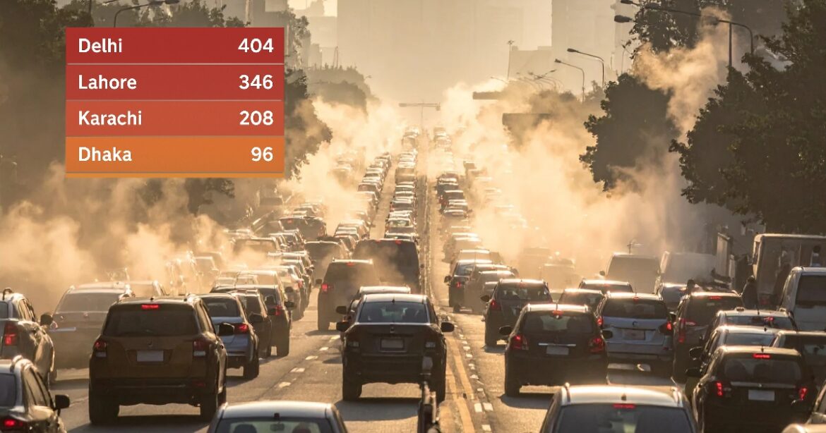 আইকিউএয়ারের দেওয়া তথ্যে দেখা যায়, দূষিত শহরের তালিকায় প্রথম স্থানে রয়েছে ভারতের দিল্লি, স্কোর ৪০৪। দ্বিতীয় অবস্থানে রয়েছে পাকিস্তানের লাহোর, বায়ুর মানের স্কোর ৩৪৬, তৃতীয় স্থানে রয়েছে করাচি, স্কোর ২০৮। দূষিত বাতাসে শীর্ষ দশে থাকা অপর শহরগুলোর বাতাসের মানের স্কোর ১২৯ থেকে ১৯০-এর মধ্যে।