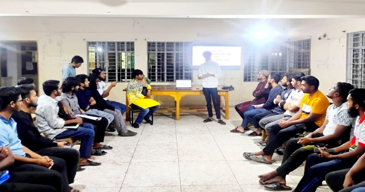 বুধবার (১২ নভেম্বর) দিবাগত রাত সাড়ে ১০টার দিকে উক্ত হলের আবাসিক শিক্ষক বাংলা বিভাগের প্রভাষক মোঃ গোলাম মাহমুদ পাভেলের উপস্থিতিতে এবং আবছার উদ্দিন ইফতির সঞ্চালনায় এই কর্মশালা অনুষ্ঠিত হয়।