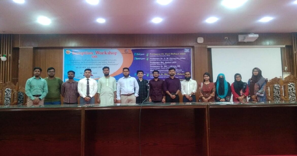 পটুয়াখালী বিজ্ঞান ও প্রযুক্তি বিশ্ববিদ্যালয় এ হিট-এটিএফ উপ-প্রকল্পের অধীনে “ডেভেলপমেন্ট অফ এ রেপিড, ননইনভেসিভ অ্যান্ড ইকো ফ্রেন্ডলি টেকনোলজি ফর সীফুড কোয়ালিটি অ্যান্ড এনালাইসিস ইউসিং ফ্লুরোসেন্স ফিঙ্গারপ্রিন্ট কাপলড উইথ কেমোমেট্রিক্স” শীর্ষক প্রকল্পটির উদ্বোধনী কর্মশালা অনুষ্ঠিত হয়েছে।