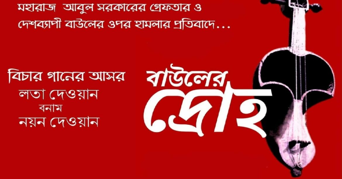 মহারাজ আবুল সরকারের গ্রেফতার ও দেশব্যাপী বাউলদের ওপর হামলার প্রতিবাদে জাহাঙ্গীরনগর বিশ্ববিদ্যালয়ে আয়োজিত হতে যাচ্ছে ‘বাউলের দ্রোহ’। আগামী ৩০ নভেম্বর বিকেল ৫টায় জাহাঙ্গীরনগর বিশ্ববিদ্যালয়ের ট্রান্সপোর্ট চত্বরে এই বিশেষ আসর অনুষ্ঠিত হবে।