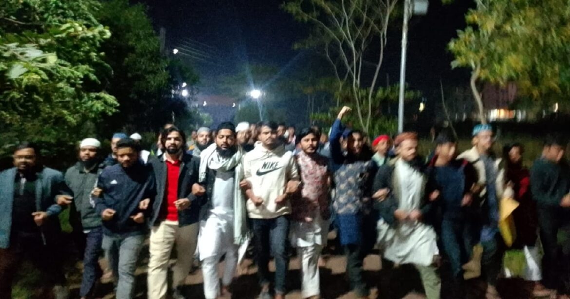 ইনকিলাব মঞ্চের আয়েজনে বিশ্ববিদ্যালয়ের গ্রাউন্ডফ্লোরে সন্ধ্যা ৬ টায় এই বিক্ষোভ মিছিল অনুষ্ঠিত হয়। বিক্ষোভ মিছিলে শিক্ষার্থীরা অনতিবিলম্বে সন্ত্রাসীদের আইনের আওতায় নিয়ে এসে উপযুক্ত শাস্তি নিশ্চিতের দাবি জানিয়েছেন। এবং সমগ্র দেশের আইনশৃঙ্খলবাহিনীকে অনতিবিলম্বে সন্ত্রাসীদেরকে দমনে কঠোর পদক্ষেপ নেয়ার দাবি জানিয়েছেন।