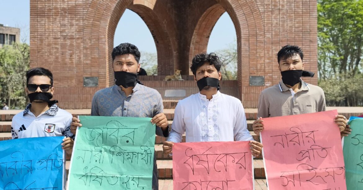 জাবিতে ধর্ষণের বিচারের দাবিতে মুখে কালো কাপড় বেঁধে ছাত্রশক্তির মানববন্ধন