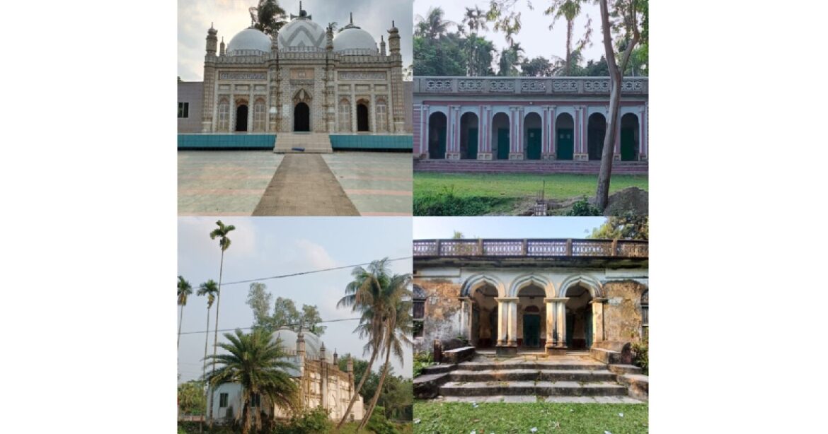 মসজিদের পিছনে চৌধুরী বাড়ির কয়েকটি প্রাচীন পরিত্যক্ত দালান রয়েছে। ভবনগুলো ট্যালি ইটের তৈরি। প্রায় ৩৫০ বছরের পুরনো এসব ভবন। বর্তমানে দালানগুলো নতুন করে সংস্কার কাজ চলমান। চৌধুরী বাড়ির সামনে দুইটি বৈঠকখানা আছে। যেখান থেকে চৌধুরীরা তাদের জমিদারি কার্যক্রম পরিচালনা করতো।
